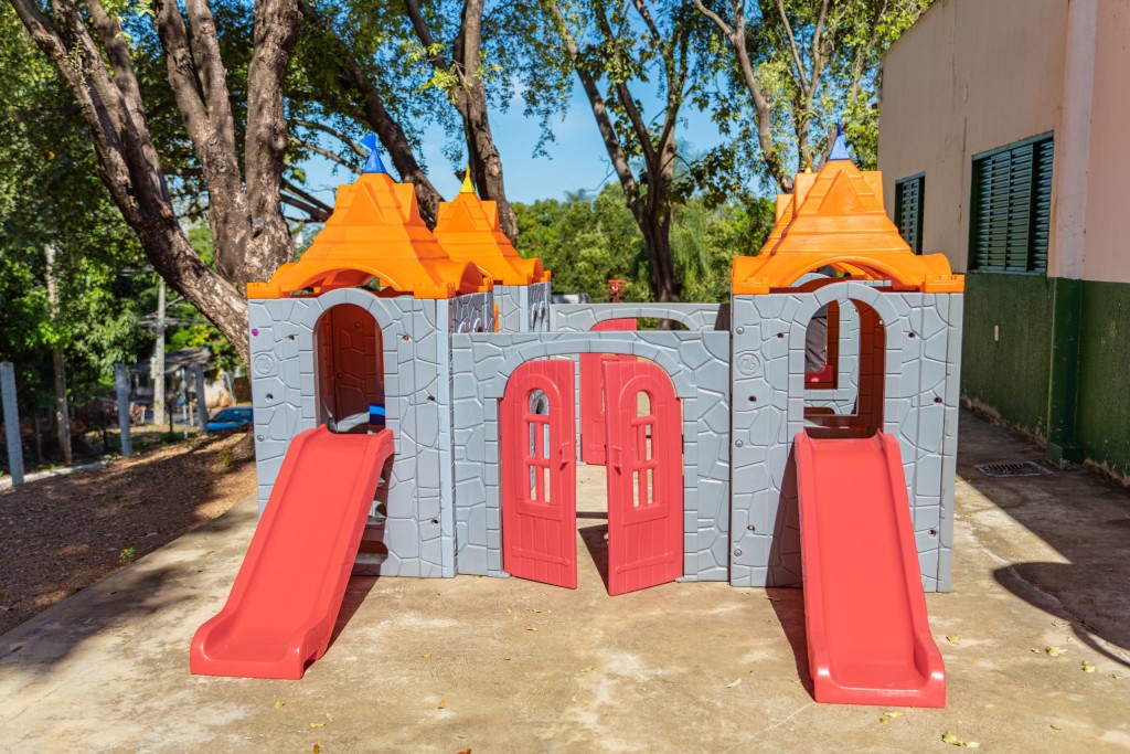 A Prefeitura de Cuiabá, por meio de ações da Secretaria Municipal de Educação, tem instalado parques infantis coloridos de madeira plásticas nas escolas e creches