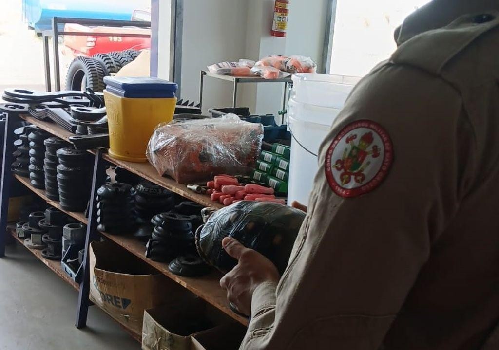 Bombeiros resgatam jabuti que estava em loja de equipamentos agrícolas