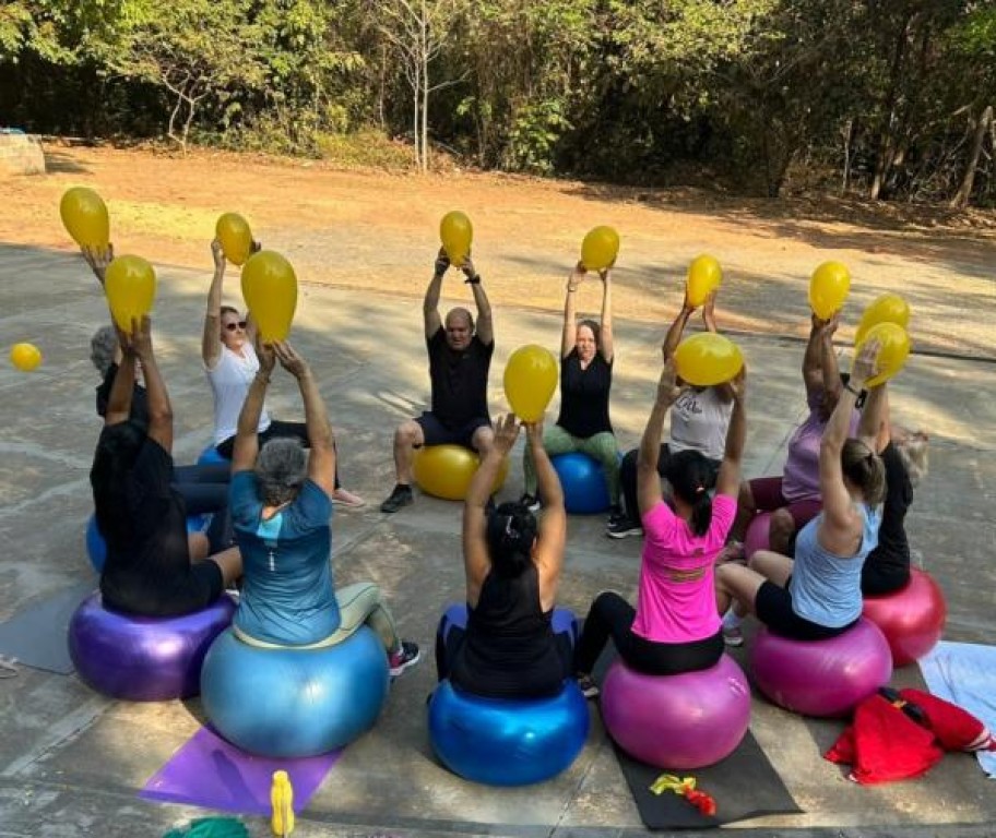 Com bola, tapete, elástico e uma boa dose de disposição, os participantes mergulharam na prática em contato direto com a natureza. Além de alongar e fortalecer o corpo, a manhã trouxe leveza, socialização e um convite especial ao autocuidado.