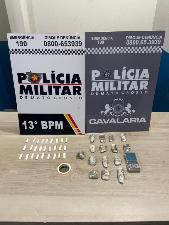 Em seguida, os policiais militares, durante patrulhamento tático na região do Ginásio Municipal, abordaram dois adolescentes de 15 e 17 anos. Os menores foram flagrados com 15 porções de maconha, 27 porções de cocaína e uma balança de precisão. Os suspeitos foram conduzidos à delegacia para registro do boletim de ocorrência para demais providências cabíveis.