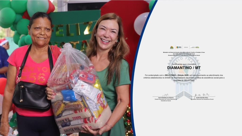 A Prefeitura de Diamantino, por meio da Secretaria Municipal de Assistência Social, Trabalho e Cidadania, recebeu o Selo FNAS – Edição 2025, certificação concedida pela União que reconhece a boa gestão dos recursos destinados à política de assistência social.