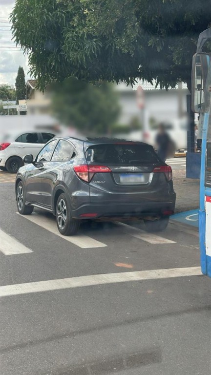 Há dias, a Guarda Municipal de Trânsito (GM) tem recebido denúncias de um veículo estacionado justamente na faixa de pedestre na saída de uma escola; na foto, além de estar sob a faixa, o veículo também atrapalha o acesso reservado a pessoas com deficiência (PCD). Há dias, a equipe da Guarda também iniciou uma série de palestras e ações nas unidades escolares direcionadas aos pais justamente para evitar situações como essa.