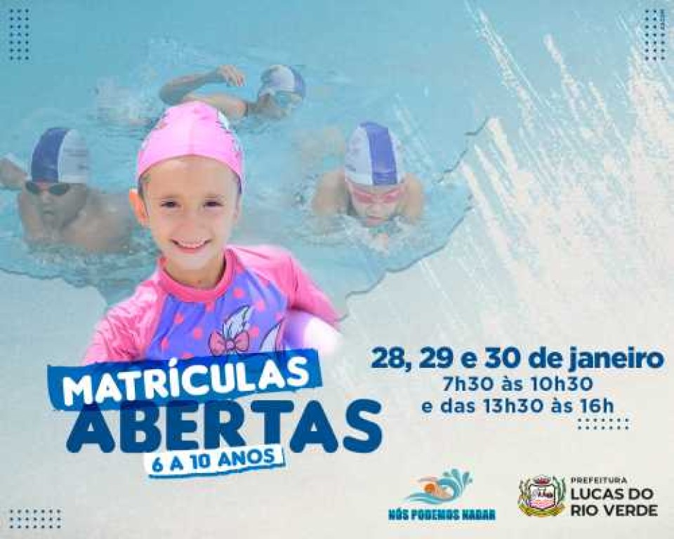 A Prefeitura de Lucas do Rio Verde informa a população que as inscrições para as aulas de natação do Projeto Nós Podemos Nadar, abrem nesta terça-feira, dia 28 de janeiro. A modalidade é ofertada gratuitamente e as aulas acontecem nas piscinas das escolas do município.