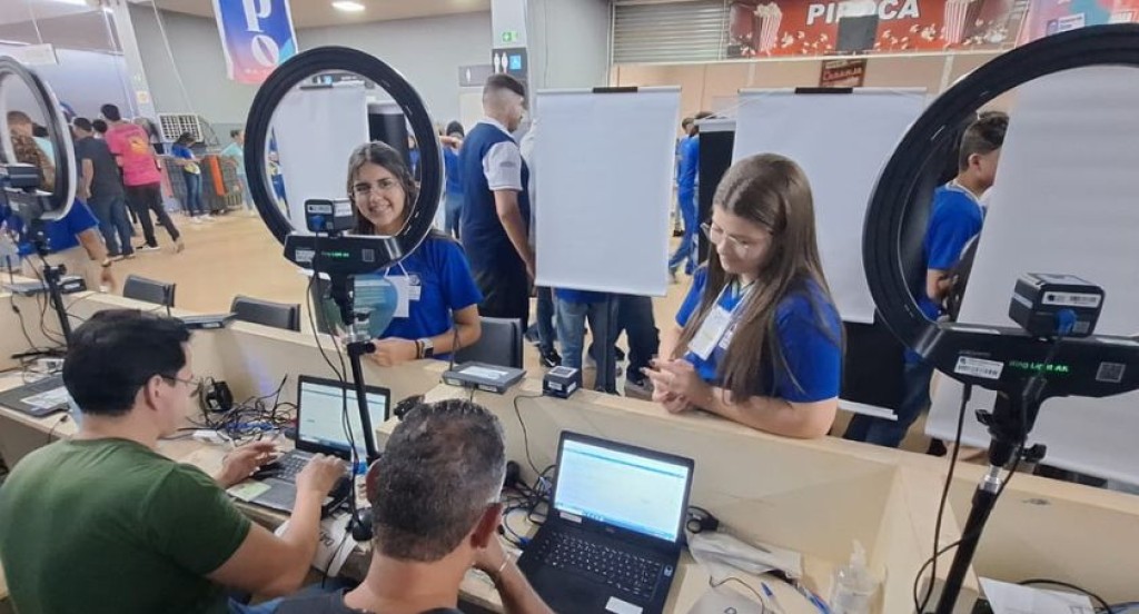 O Cartório da 1ª Zona Eleitoral levou para a Expo Estudantil 2025 toda a estrutura necessária ao atendimento dos eleitores. Quatro servidores operam quatro kits biométricos. Cada kit é composto por computador portátil, scanner para coleta da biometria, câmera digital, pad para assinatura e cases para ambientação e transporte dos equipamentos. Os itens são padronizados pelo Tribunal Superior Eleitoral (TSE) e permitem que o eleitor já deixe o mutirão com o título eleitoral em mãos e a indicação para baixar o e-Título, documento eleitoral digital com foto.