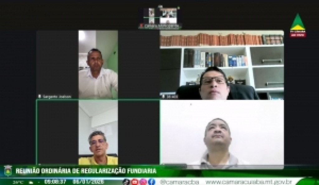 A Comissão de Regularização Fundiária da Câmara Municipal de Cuiabá discutiu, durante primeira reunião ordinária de 2026, na manhã desta terça-feira (06), a importância da aprovação da Lei Complementar nº 588, instituída como Marco Zero, que estabelece novas diretrizes para a regularização de imóveis construídos de forma irregular na capital. A comissão é presidida pelo vereador Sargento Joelson (PSB) e conta com a participação dos vereadores Marcrean Santos (MDB) e Cezinha Nascimento (União Brasil). O encontro contou ainda com a presença do advogado Júlio César, representante da Secretaria Municipal de Meio Ambiente, que prestou esclarecimentos técnicos sobre a nova legislação.