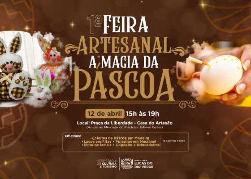 Lucas do Rio Verde se prepara para um evento encantador que promete espalhar criatividade e alegria. No dia 12 de abril, das 15h às 19h, a Prefeitura, por meio da Secretaria de Cultura e Turismo, promove a 1ª Feira Artesanal – A Magia da Páscoa. A celebração acontecerá na Casa do Artesão, anexa ao Mercado do Produtor Edvino Geller, na Avenida Goiás, no Jardim das Palmeiras.