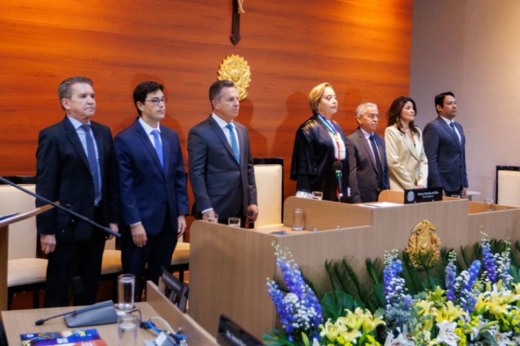 Membros do Ministério Público do Estado de Mato Grosso prestigiaram na tarde desta quinta-feira (19) a solenidade posse da nova Diretoria do Tribunal de Justiça de Mato Grosso (Biênio 2025/2026). A nova gestão, sob a liderança do desembargador José Zuquim Nogueira (presidente do TJMT), reforçada pela desembargadora Nilza Maria Pôssas de Carvalho (vice-presidente) e do desembargador José Luiz Leite Lindote (corregedor-geral da Justiça), assume os trabalhos a partir do dia 1º de janeiro de 2025.