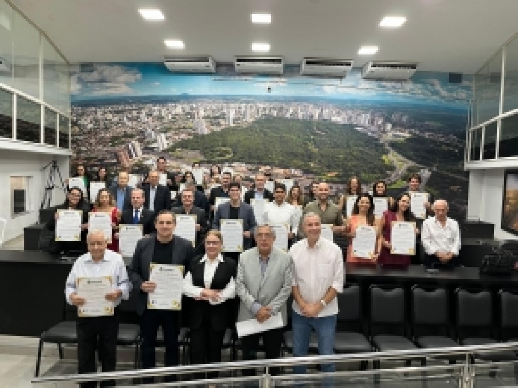 A presidente da Câmara Municipal de Cuiabá, vereadora Paula Calil (PL), entregou, na tarde desta segunda-feira (19), moções de aplauso em homenagem aos 52 anos de atuação da Câmara de Dirigentes Lojistas – CDL Cuiabá, celebrados neste ano.