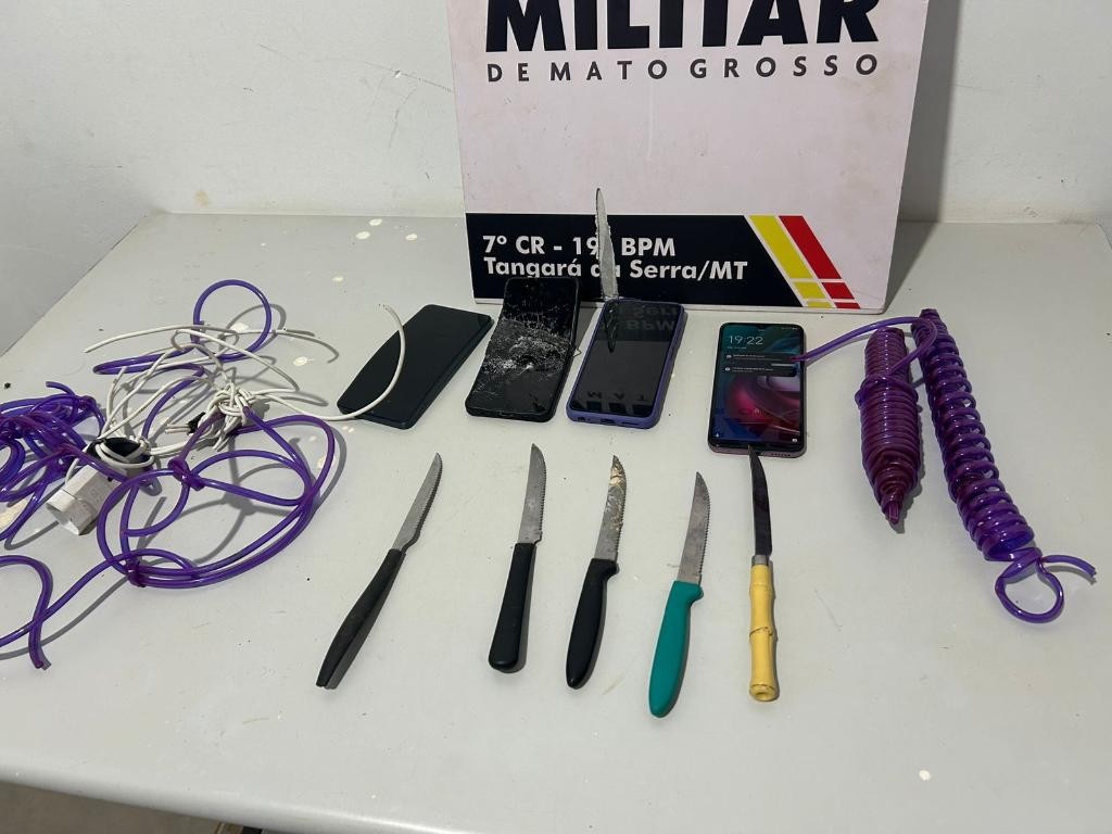 Policiais militares do 19º Batalhão resgataram, na noite desta segunda-feira (8.12), quatro pessoas mantidas reféns e apreenderam quatro adolescentes por sequestro e cárcere privado, em Tangará da Serra (252 km de Cuiabá). As equipes recolheram três facas e dois rolos de fios elétricos e de cadeiras, utilizados para ameaçar e conter as vítimas.