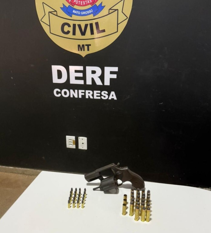 Uma arma de fogo, munições e um caminhão com placa adulterada foram apreendidos pela Polícia Civil, na quinta-feira (25.9), em Confresa, durante ações de combate a criminalidade, realizadas pela Delegacia Especializada de Roubos e Furtos (DERF) do município.