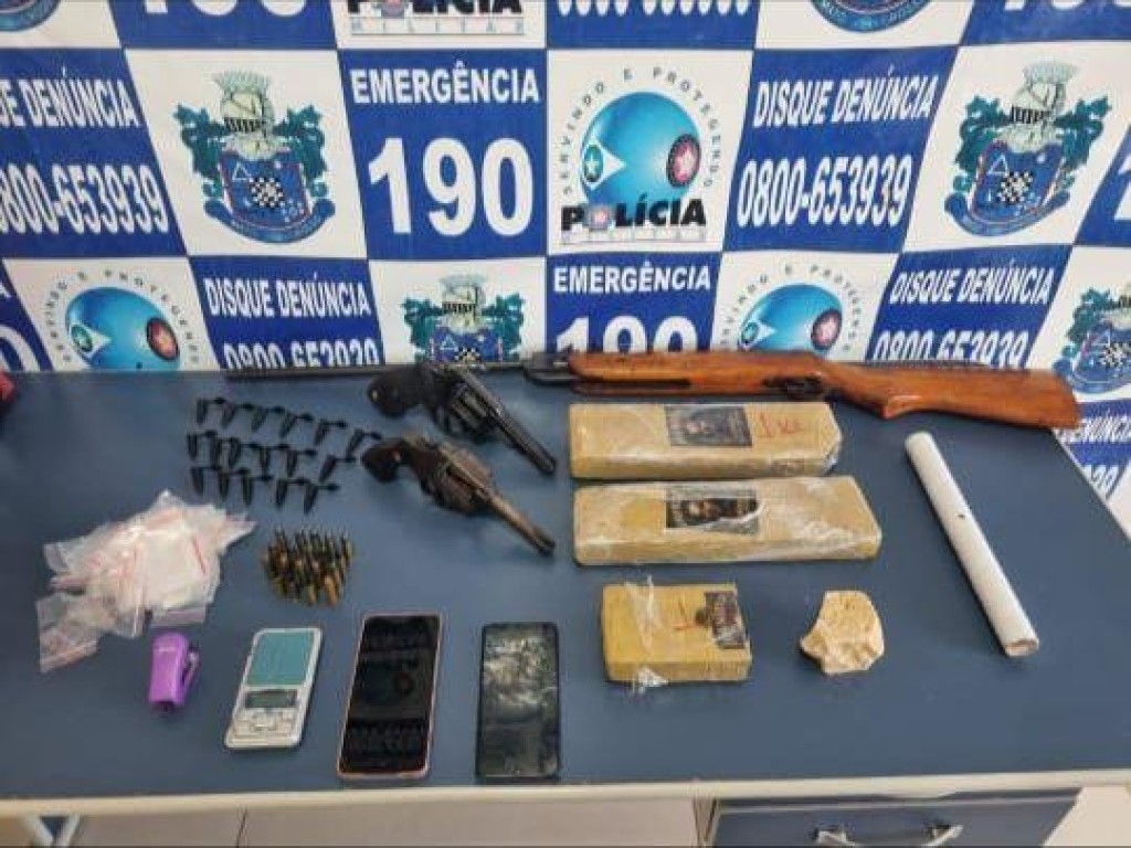 O homem foi detido e levou os militares até sua casa. No local, os policiais encontraram dois revólveres, uma espingarda e munições para o armamento. Ainda no imóvel, foram localizados dois tabletes de maconha e meio tablete de pasta base de cocaína, além de porções das mesmas drogas e materiais utilizados para o tráfico.
