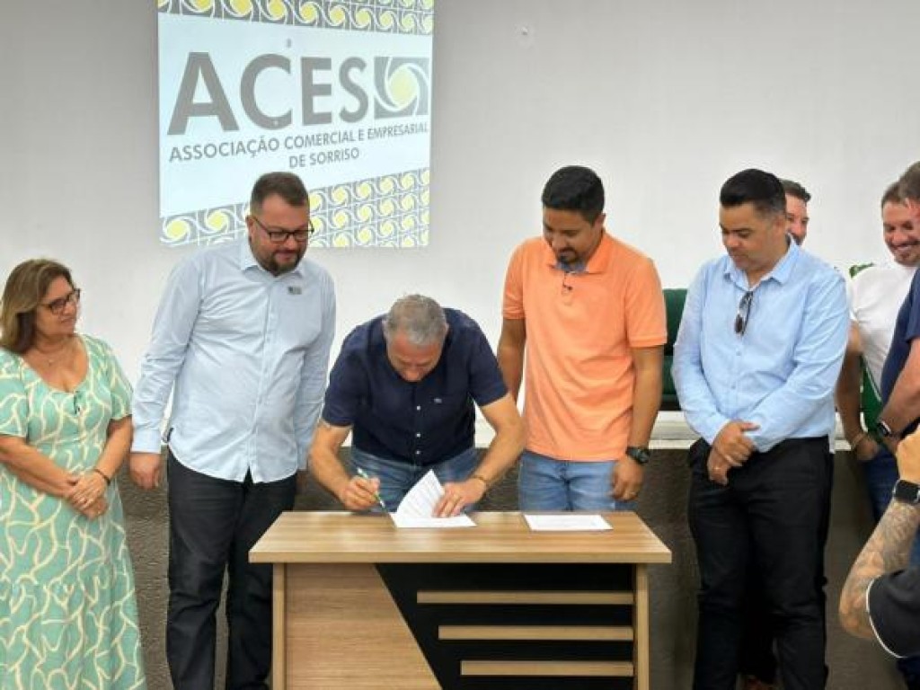 Na manhã desta quinta-feira, 23 de outubro, no auditório da Associação Comercial e Empresarial de Sorriso (ACES), o prefeito Alei Fernandes, o presidente da Câmara Municipal de Sorriso, Rodrigo Matterazzi, e o presidente da ACES, Sávio Júnior Zaniolo, assinaram o termo de parceria que viabiliza o projeto “Natal Luz” na cidade de Sorriso. O acordo prevê o repasse de R$ 2,2 milhões, sendo R$ 1 milhão da Prefeitura – por meio da Secretaria de Cultura – e R$ 1,2 milhões de devolução da Câmara.
