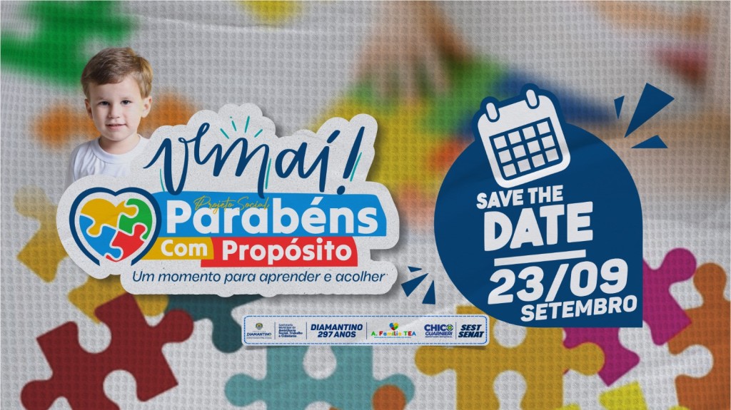 A Prefeitura de Diamantino, por meio da Secretaria Municipal de Assistência Social, Trabalho e Cidadania, convida toda a comunidade para participar no dia 23 de setembro, a partir das 16 horas, do evento “Parabéns com Propósito”, que acontecerá no auditório do Sest Senat.