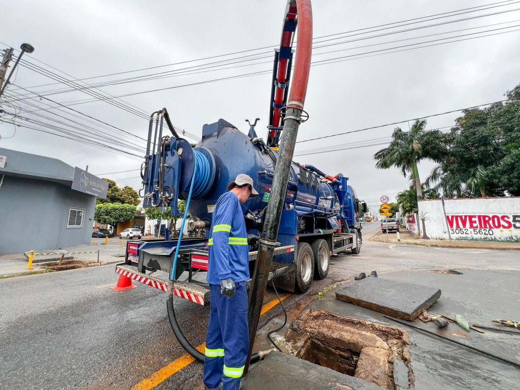Para a execução da atividade, a equipe técnica contou com o apoio de equipamentos como caminhão hidrojato, retroescavadeira e caminhão caçamba. O hidrojato é responsável pela sucção dos materiais contaminantes, enquanto a limpeza manual é realizada dentro das caixas coletoras. Já a retroescavadeira auxilia na abertura das tampas de concreto das bocas de lobo, permitindo acesso às estruturas internas. Todo o resíduo recolhido é devidamente transportado e descartado de forma ambientalmente adequada.