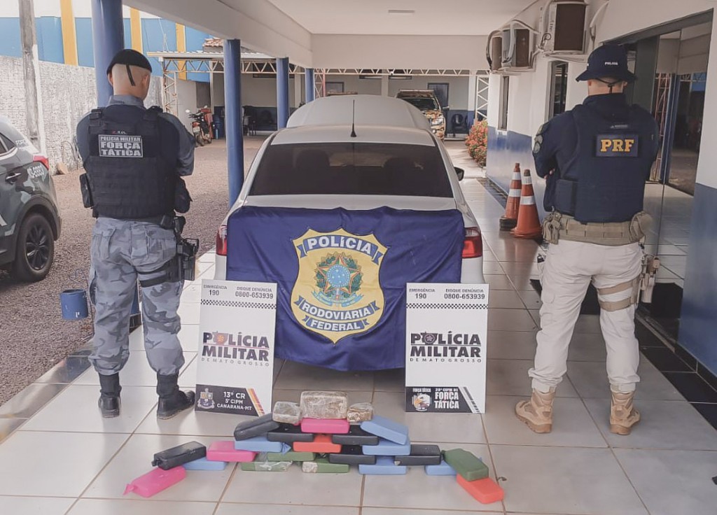 PRF e PM apreendem 25 kg de pasta base de cocaína em veículo em Canarana-MT