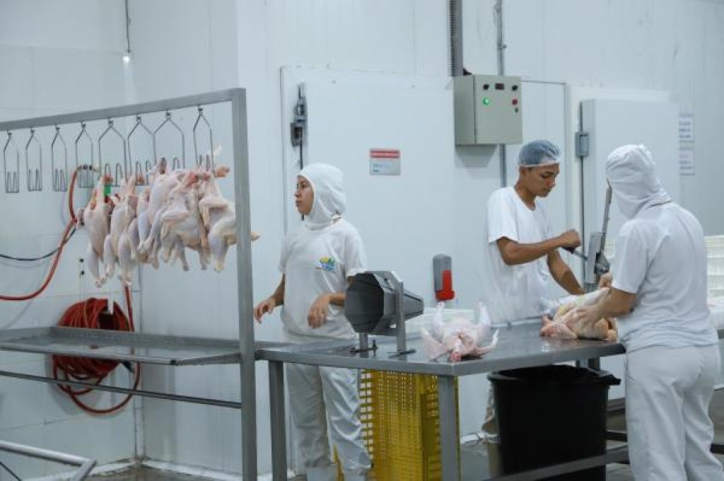 Abate, embalagem e congelamento das aves;