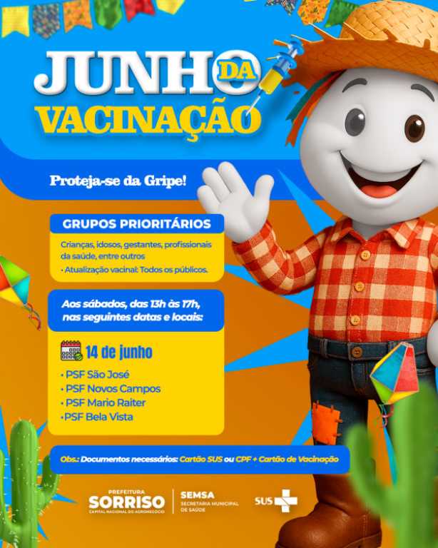Com foco no aumento da cobertura vacinal que continua abaixo do recomendado pelo Ministério da Saúde, o Município ampliará a partir do próximo sábado a Campanha Junho da Vacinação. As ações de vacinação contra a gripe, serão intensificadas estrategicamente em 13 unidades de saúde, incluindo o Distrito de Primavera, nos dias 14, 21 e 28 — no horário das 13h às 17h.